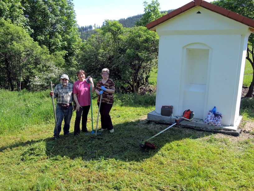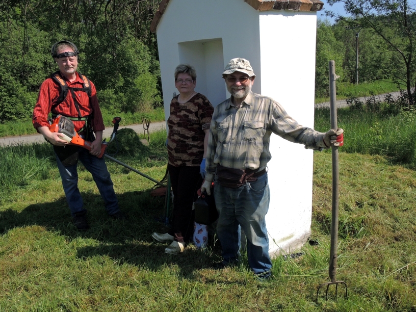 Jelikož úsek křížové cesty mezi V. a VI. zastavením není vyšlapán turisty, je nutné zatím vysekat každý rok trávu. V sobotu 21.5. tak bylo provedeno za příznivého počasí a v zarostlé louce byla brzy znatelná nová pěšina, včetně vyčištění okolí obou kapliček.